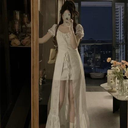| nameOriginal | Women's French Square Neck Summer Fat mm Short Sleeve Dress |