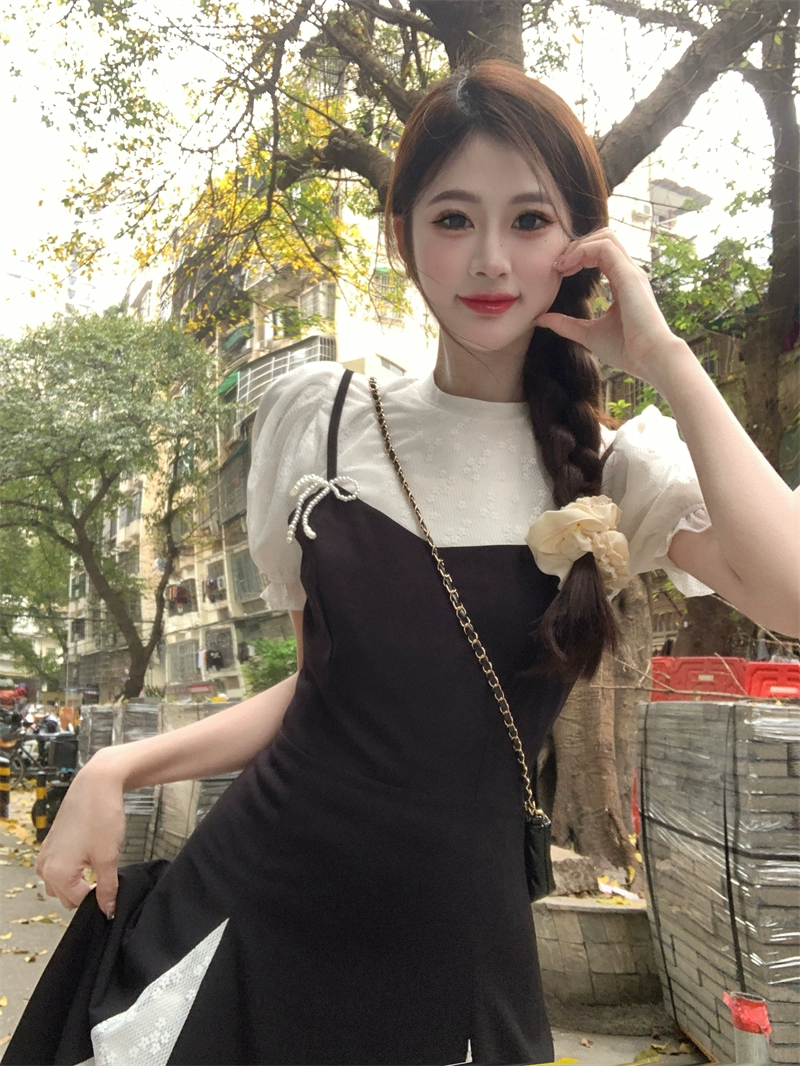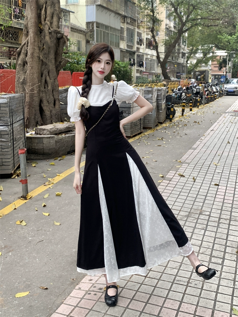 Women's French style summer layered suspender dress