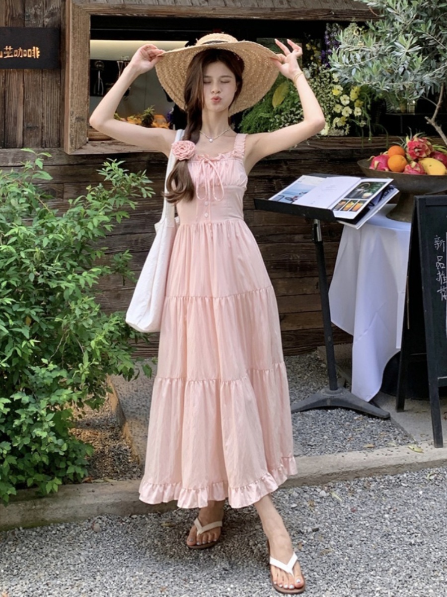 | nameOriginal | Women's French summer belly-covering slimming suspender dress |