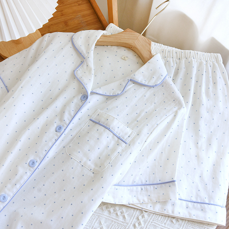 | nameOriginal | Women's gauze summer new double-layer combed cotton thin fresh small dots loose breathable home wear can be worn outside |