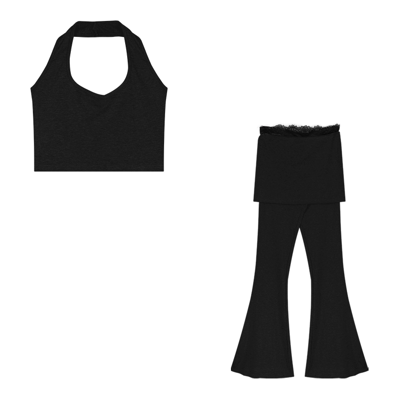 Women’s gray sexy lace trumpet two-piece halterneck set