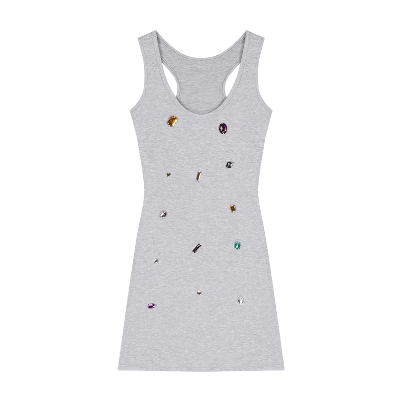 | nameOriginal | Women's gray slim fit vest dress summer studs |