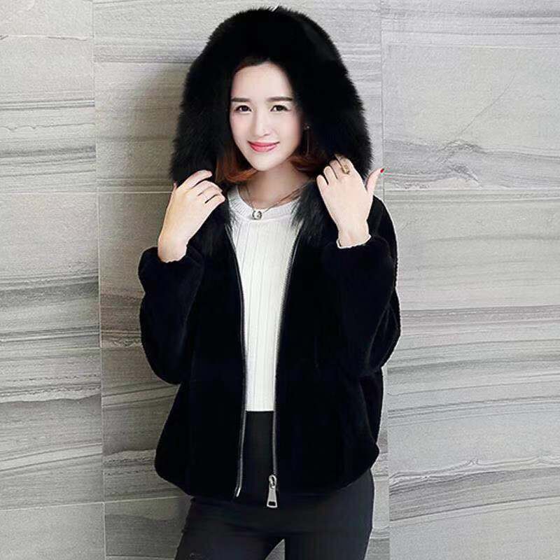 Women’s Haining Imitation Sheep Hooded Coat Short Korean-style New Imitation Fox Fur Collar Fur Outer Hair