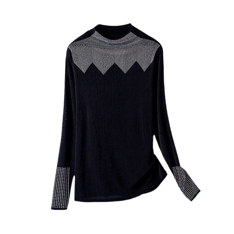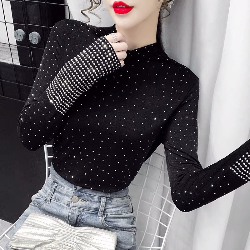 | nameOriginal | Women's Half-High Neck Base Shirt with Hot Rhinestone Half-High Neck Empty Glittering Clothes Season-Style Top Lace Stitching Scrub Protection |