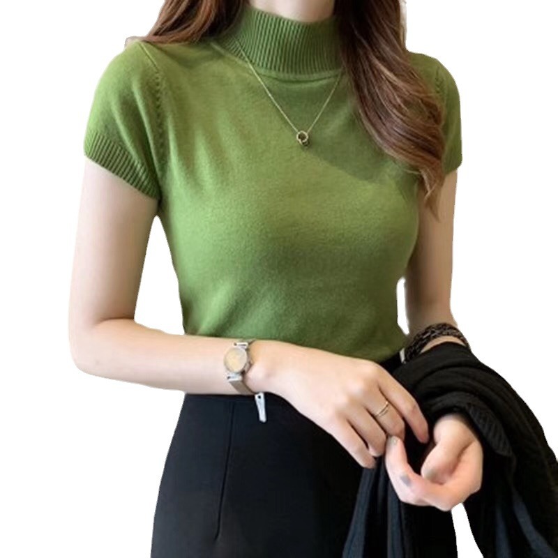 | nameOriginal | Women's Half-High Neck Half-Sleeve Knitted Shirt Spring and Autumn Base Shirt Inner Sweater Slim-Fit Slimming Short Vest Top for Outer Wear |