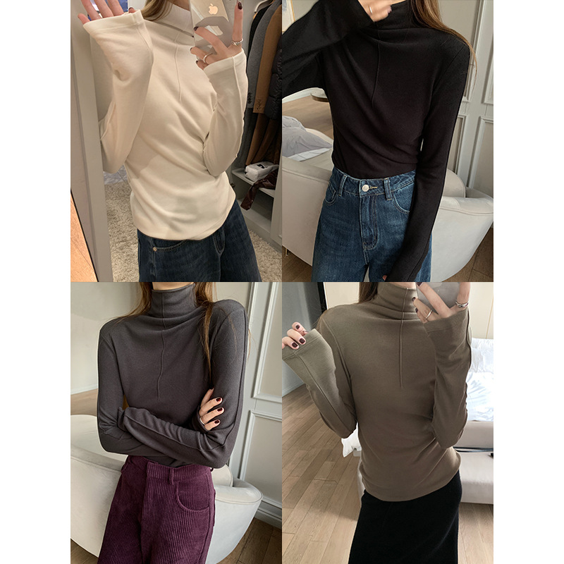 | nameOriginal | Women's half turtleneck bottoming shirt 2024 spring new fleece-lined bright line long sleeve simple slim slimming elegant top |