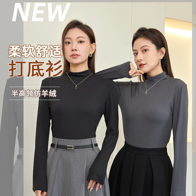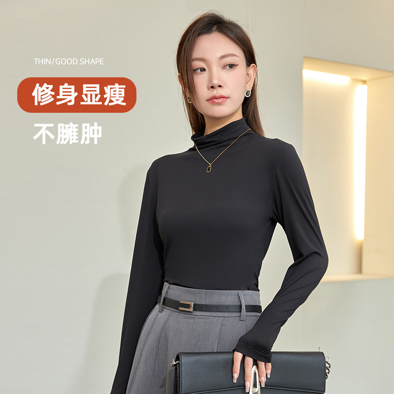 Women’s half turtleneck bottoming shirt high-grade autumn and winter New slim fit inner long sleeve T-shirt outer wear solid color slimming top