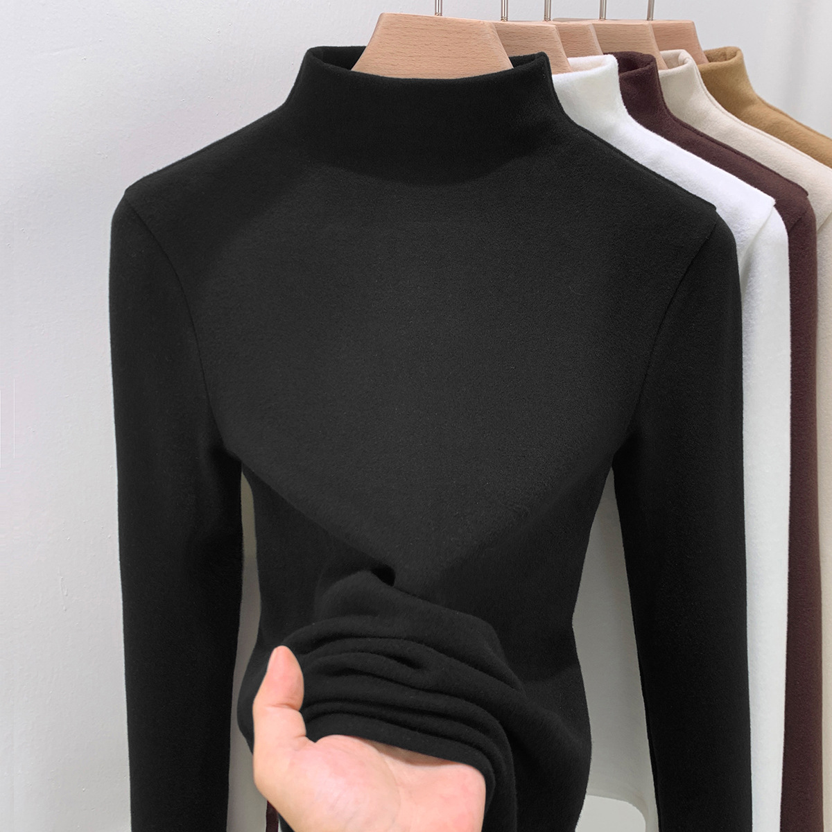 | nameOriginal | Women's half turtleneck velvet bottoming shirt, spring and autumn fleece-lined thickened 2024 New brushed Western style slim top |