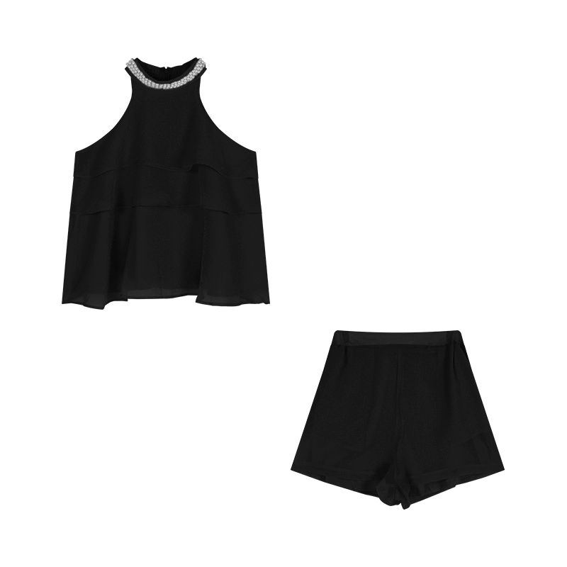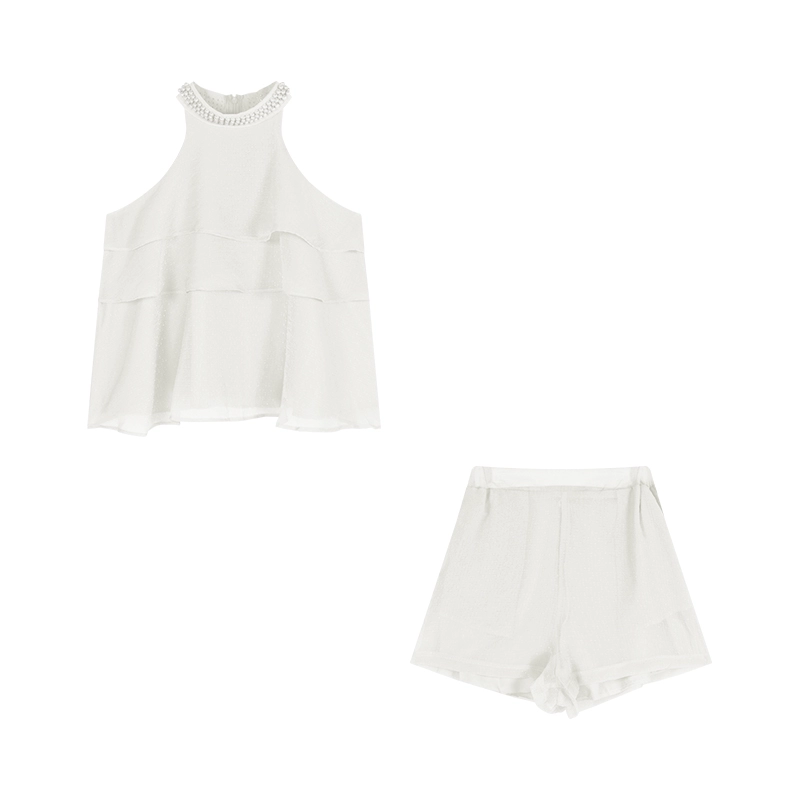 | nameOriginal | Women's halter neck vest, summer shorts two-piece set, beaded |