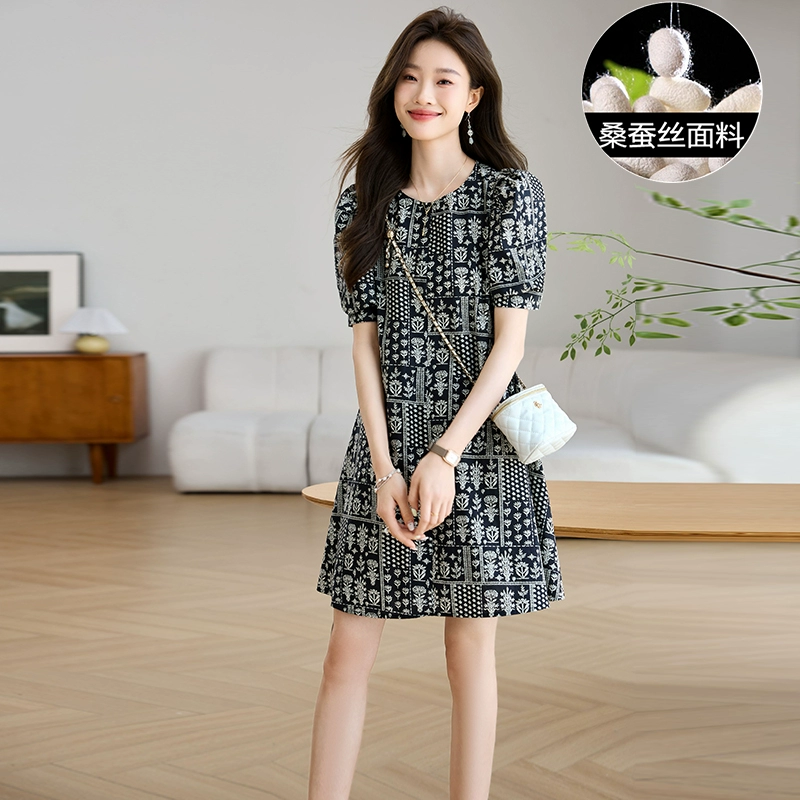 Women’s Hangzhou new summer short-sleeved silk dress