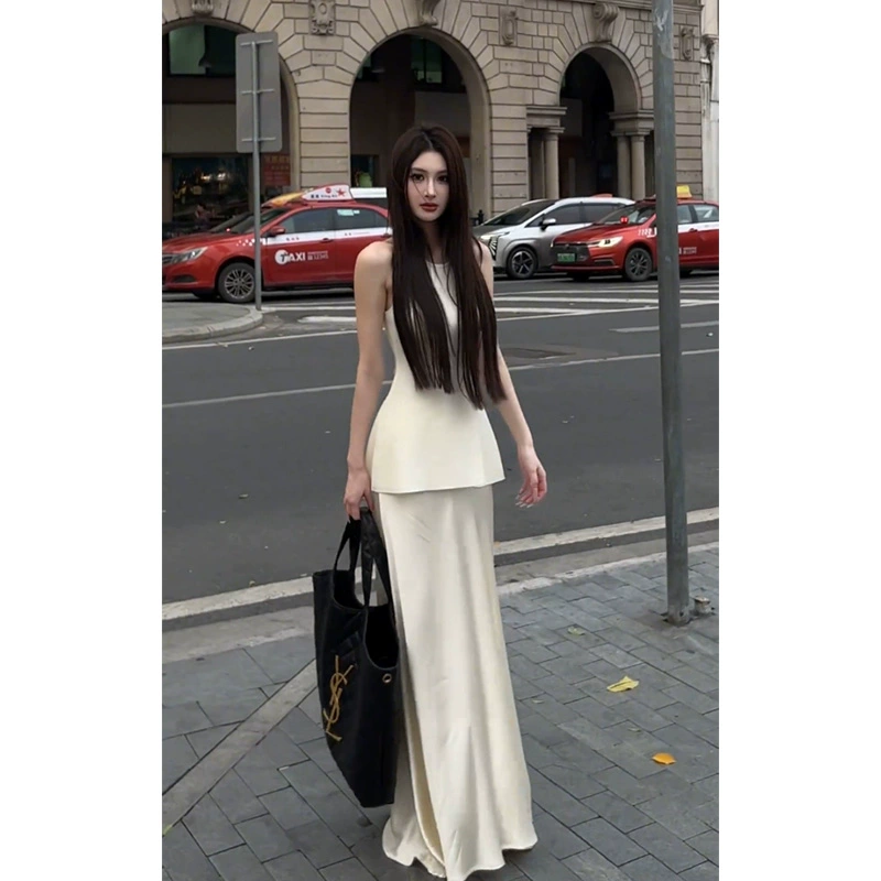 | nameOriginal | Women's High-end Satin Sleeveless Waist Slit Acetate |