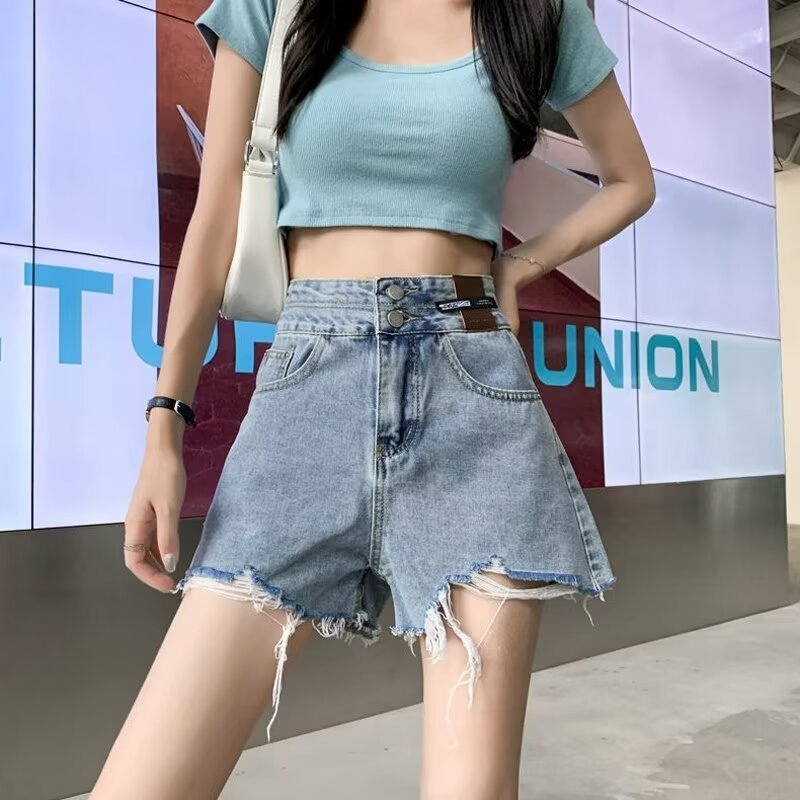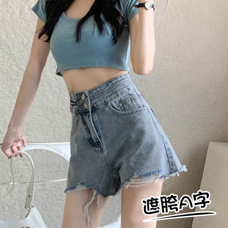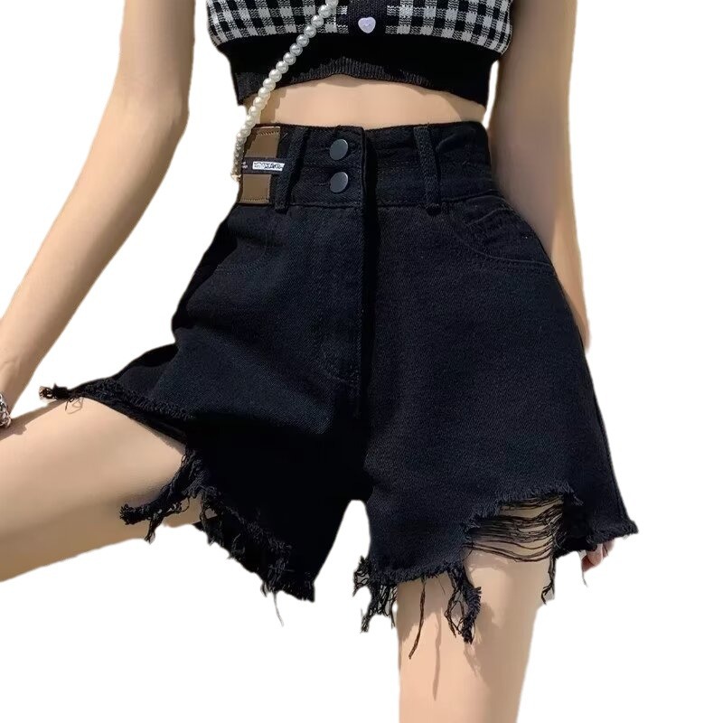 | nameOriginal | Women's Hip-Covering High Waist Denim Shorts with Woolen Edge Summer Thin High Waist-Covering Belly Slimming Black Wide-Leg Hot Pants |