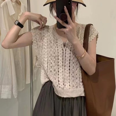 | nameOriginal | Women's hollow-out crocheted V-neck vest sweater summer 2023 new design short outer sun protection sleeveless top |