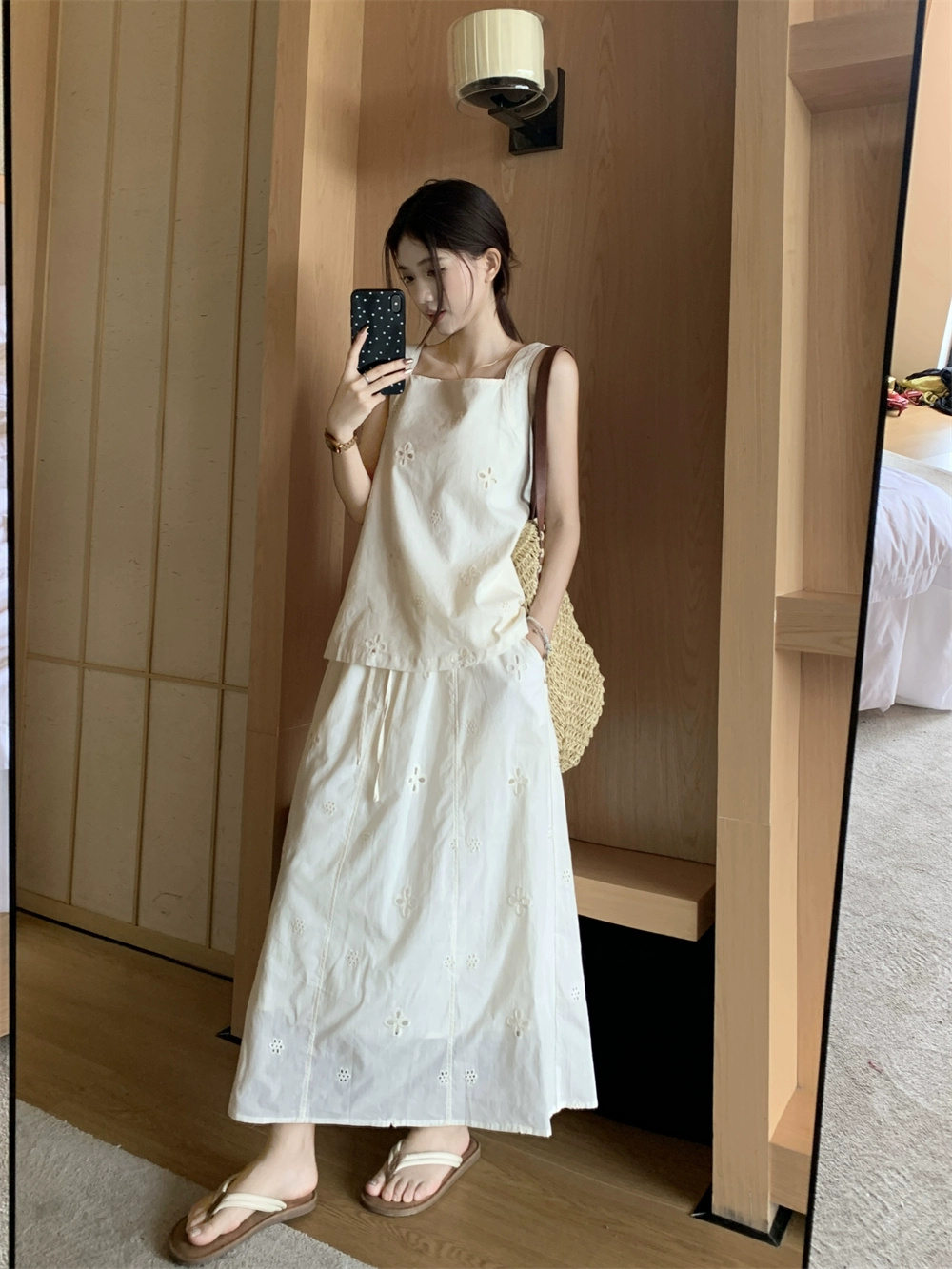 | nameOriginal | Women's Hollow Wide Shoulder Straps Resort Style A-Line Embroidery |