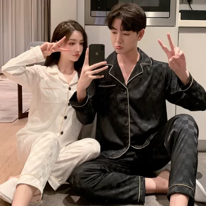 Women’s ice silk men’s plus size home wear couple’s pajamas