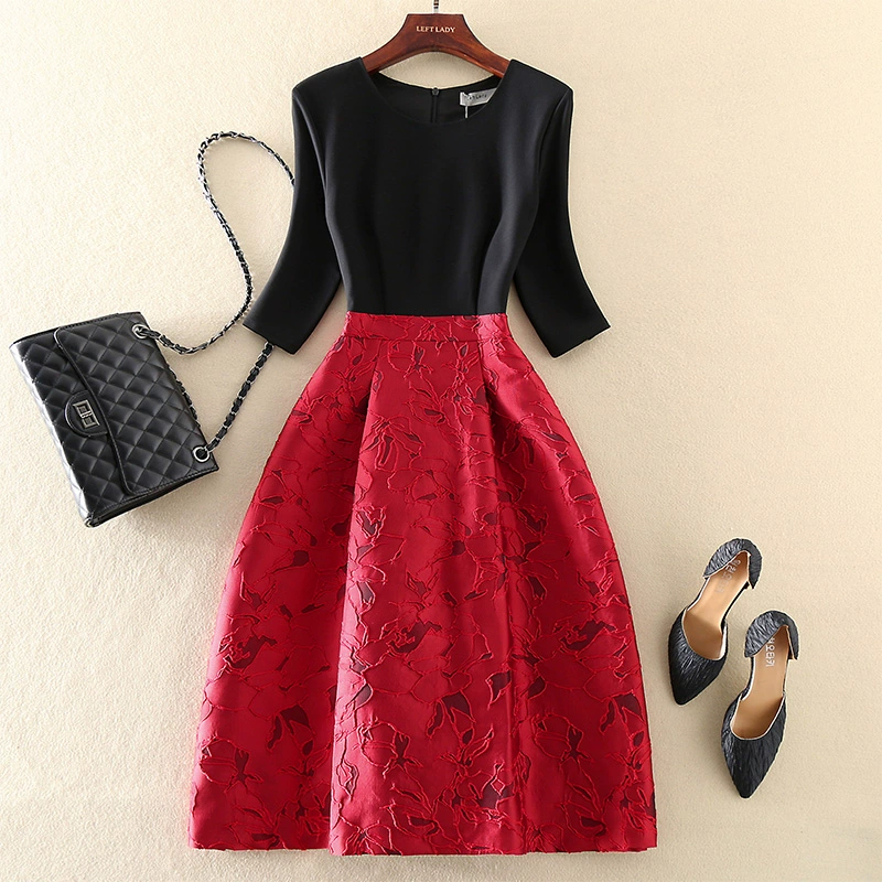 Women’s jacquard slim A-line skirt and three-quarter sleeve dress