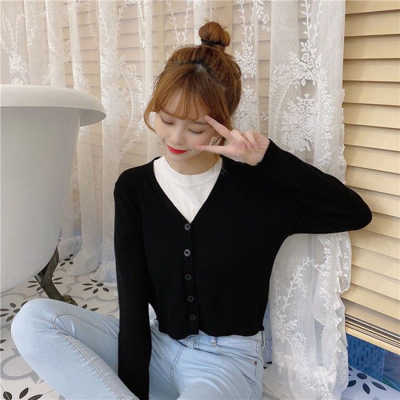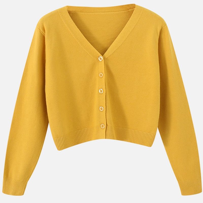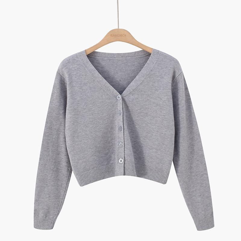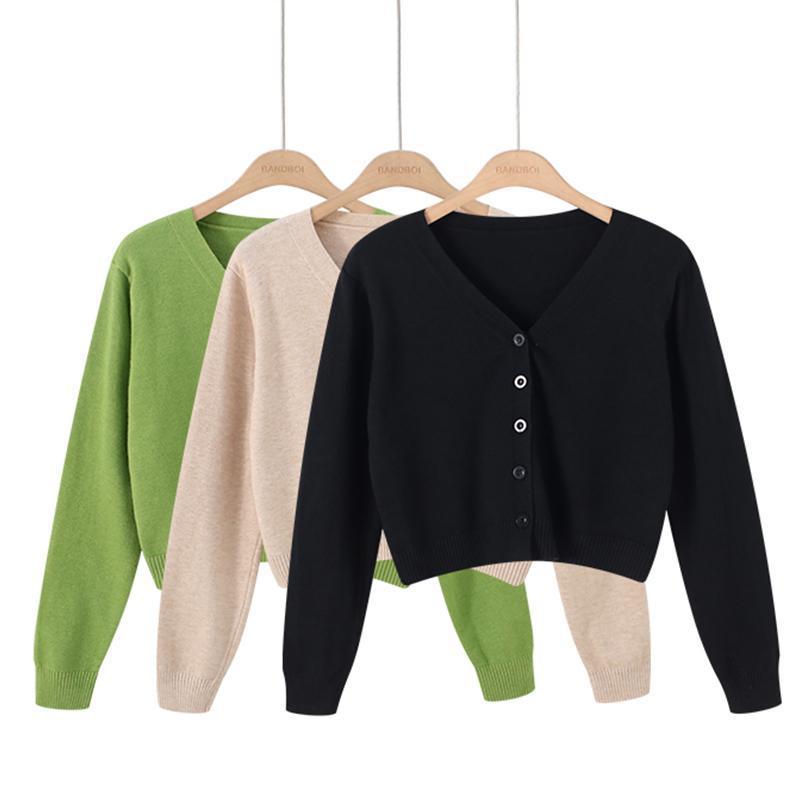 Women’s knitted cardigan loose spring and autumn short high waist long sleeve top short coat collar sweater small outer wear