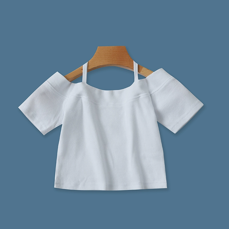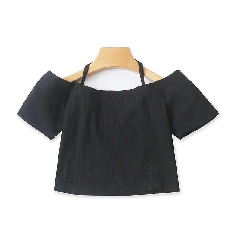 | nameOriginal | Women's knitted collar slim fit waist exposed solid color T-shirt |