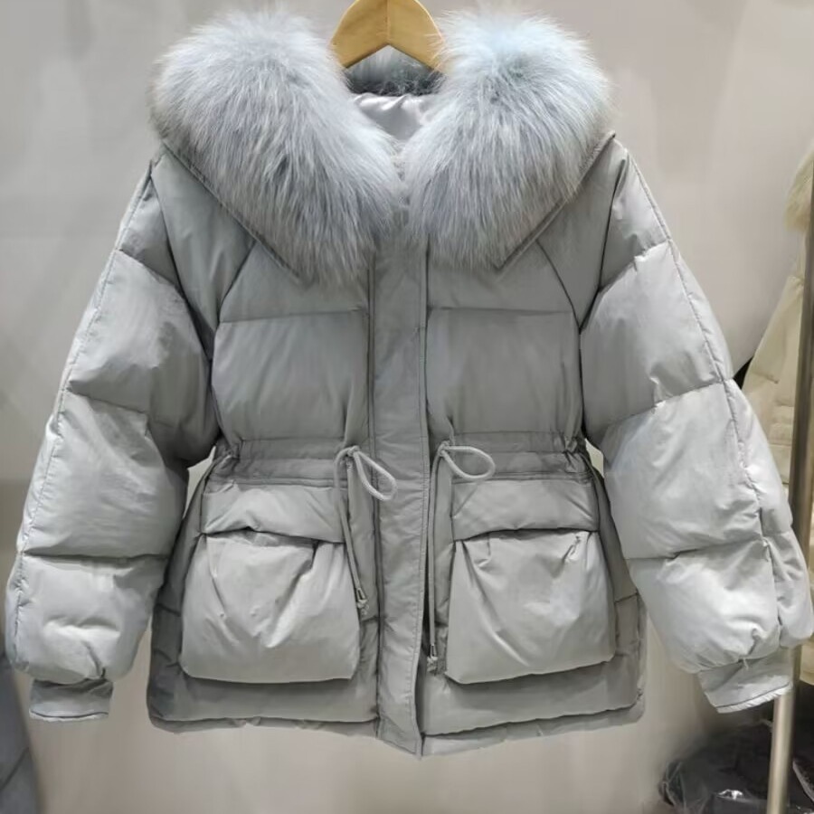 | nameOriginal | Women's Korean-style down jacket 2024 New loose thickened short Fox large fur collar white duck down bread coat |
