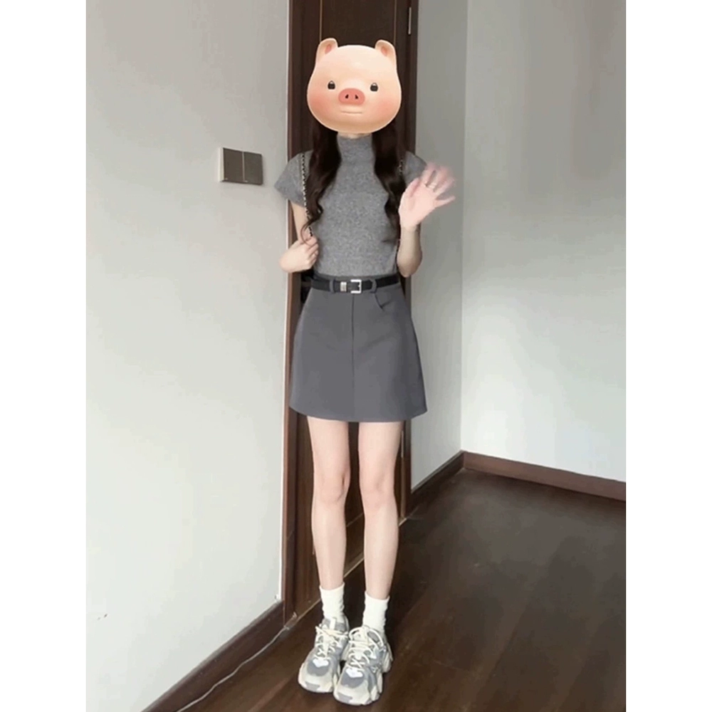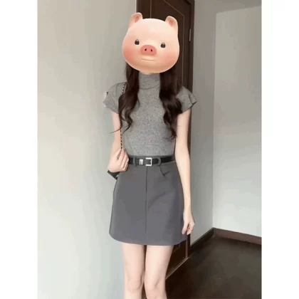Women’s Korean style gray short-sleeved A-line fashion suit