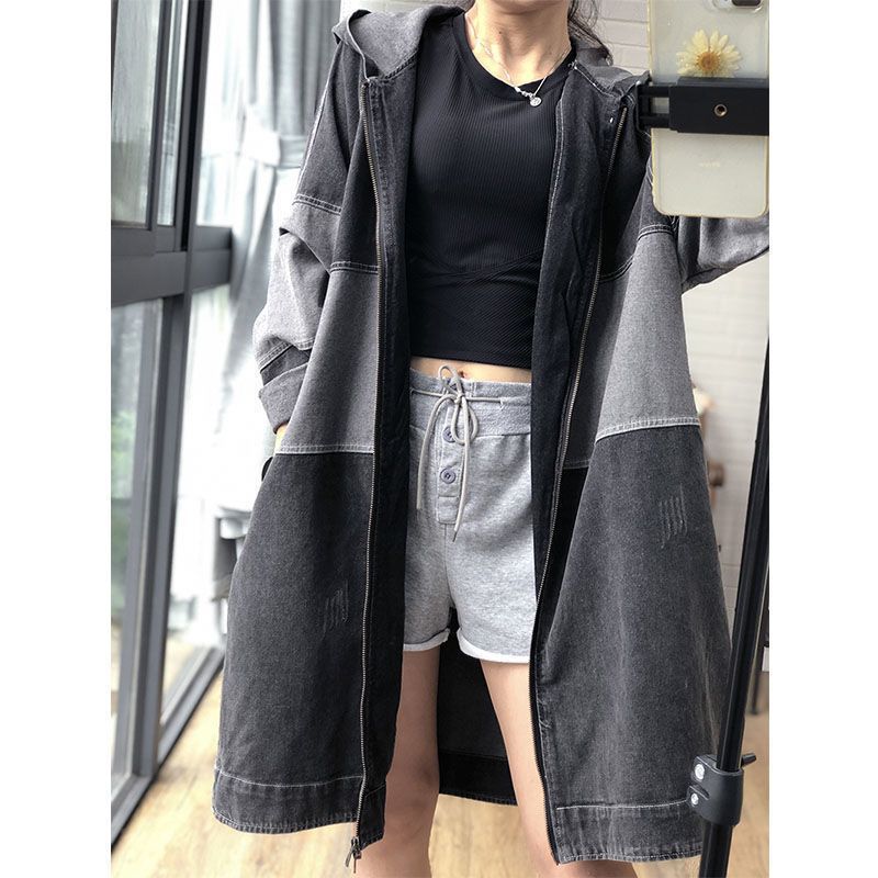 | nameOriginal | Women's Korean-style mid-length Denim windbreaker loose spring and autumn new fashionable elegant hooded stitching coat plus size trendy |