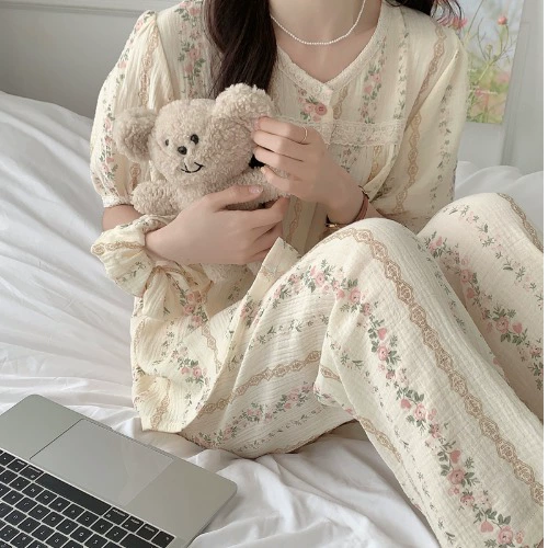 | nameOriginal | Women's Korean style pastoral style floral pure cotton home wear pajamas |