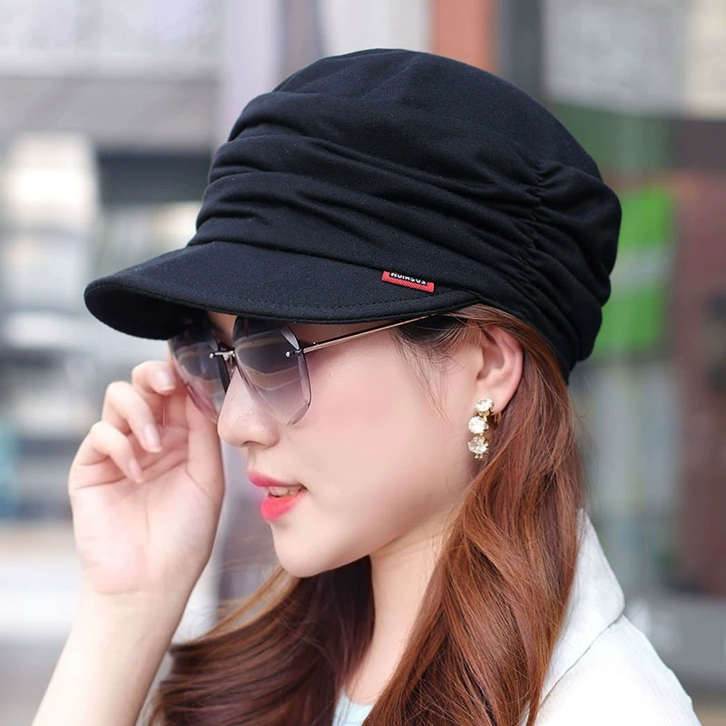 Women’s Korean version of soft along the peaked hat spring and autumn soft fold flat top hat large size men’s hats foreign qi show face small cloth hat