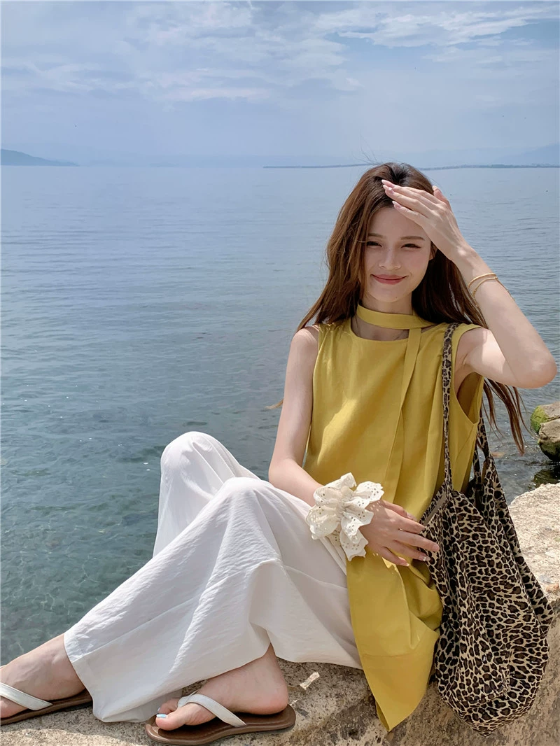 | nameOriginal | Women's kumikumi solid color polka dot straight pants vest |