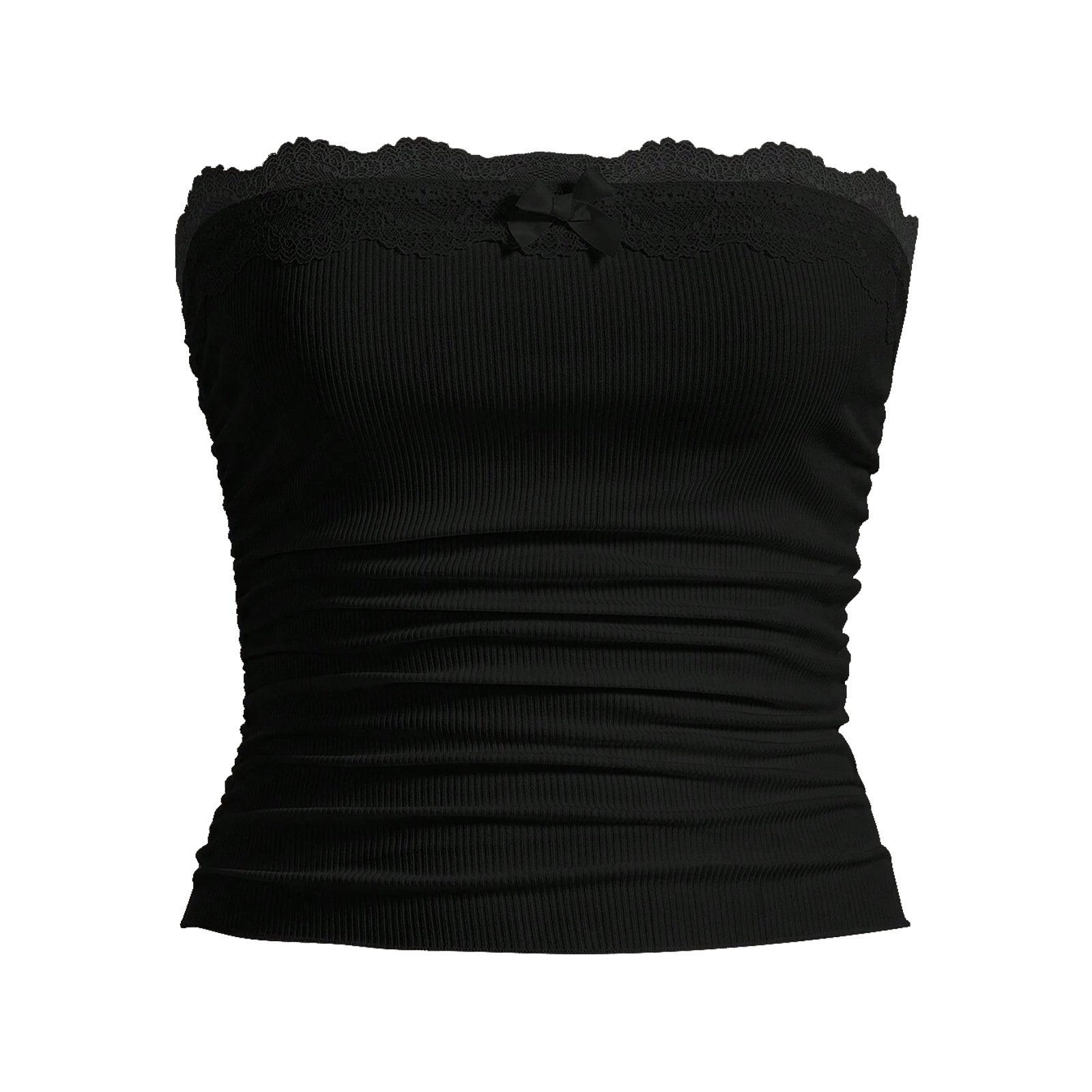 Women’s Lace Strapless Strapless Rib Pleated Strapless Y2k Summer Out Cropped Top