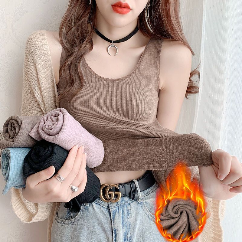 | nameOriginal | Women's Lace Trim Crewneck Warm Vest Autumn and Winter New Terry fleece-lined Inner Base Shirt Slim-fit Warm Top for Women |