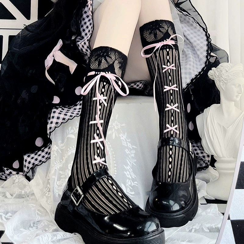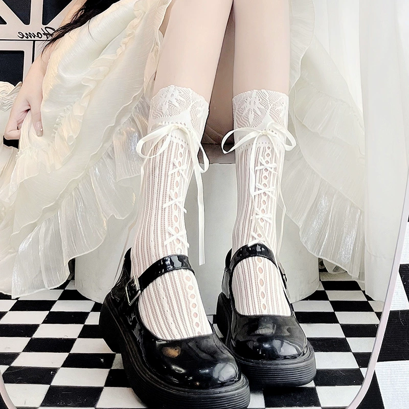 | nameOriginal | Women's lace up lolita bow lace socks |