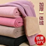 Women’s Lamb Velvet Warm Pants fleece-lined Thickened One-piece Leggings High Waist Wool Pants plus size Camel Pants Autumn and Winter