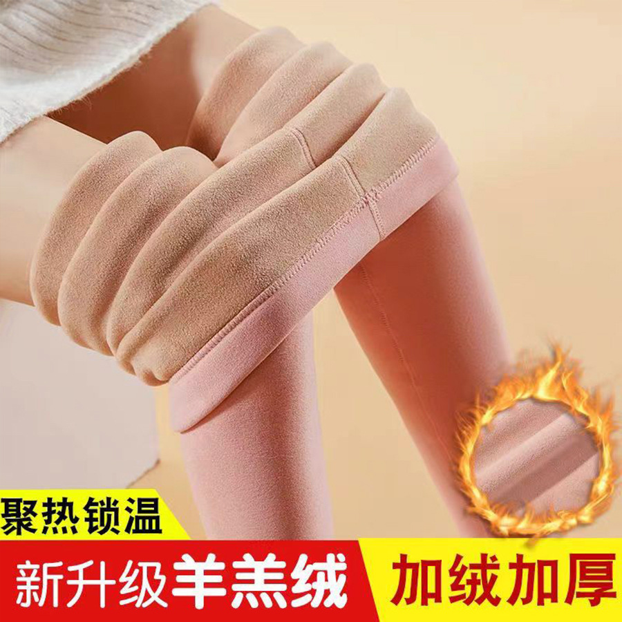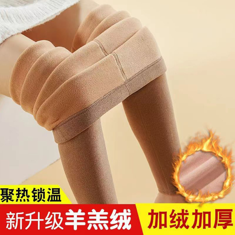 Women's Lamb Velvet Warm Pants fleece-lined Thickened One-piece Leggings High Waist Wool Pants plus size Camel Pants Autumn and Winter