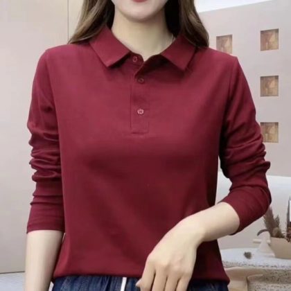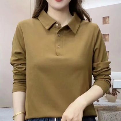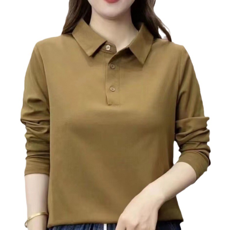 | nameOriginal | Women's Lap Collar Stylike Solid Color New Polo Collar Long Sleeve Top G Middle-aged Mother Spring and Autumn Slimming Age-reducing Shirt |