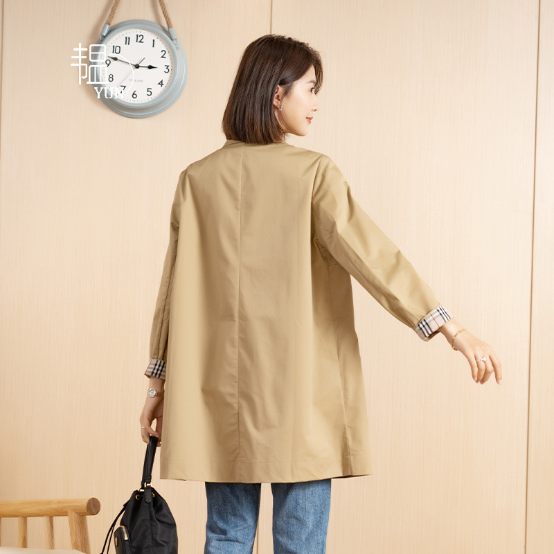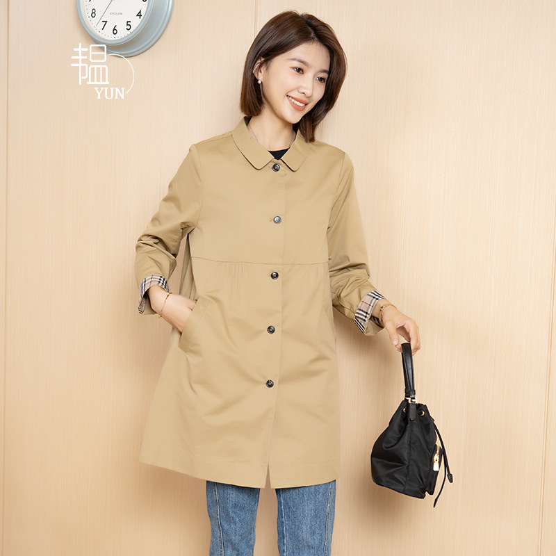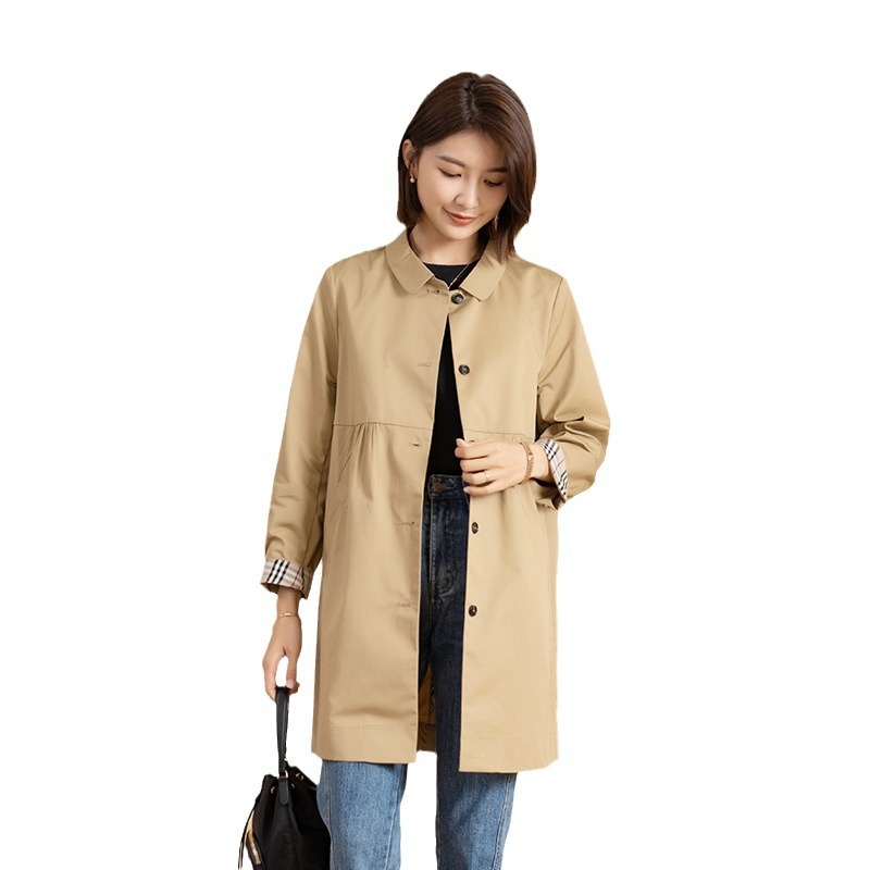 Women’s lapel single-breasted solid color mid-length Korean style trench coat, 2024 Spring and Autumn New