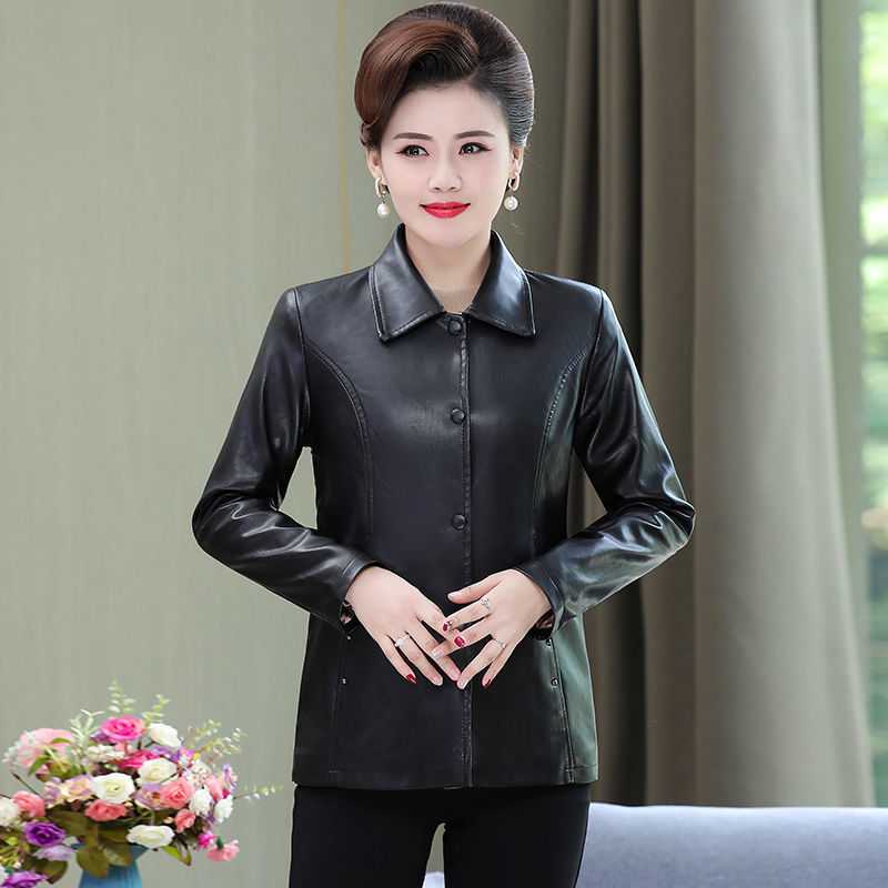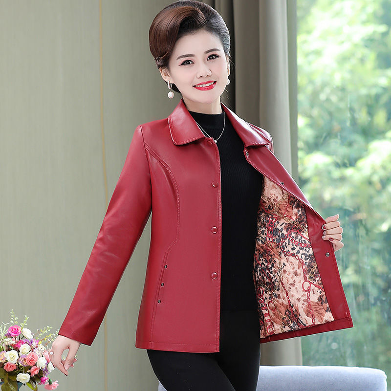 | nameOriginal | Women's leather coat autumn and winter new coat for middle-aged and elderly women's leather jacket with cotton lapel button PU leather top |