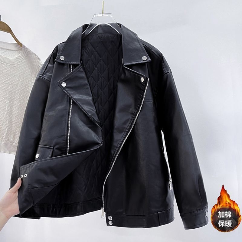 | nameOriginal | Women's Leather Coat Autumn and Winter New Korean Style Motorcycle Lapel PU Loose All-match Jacket Cardigan Short Coat Cotton Trendy |