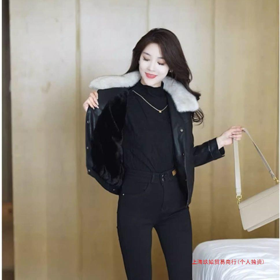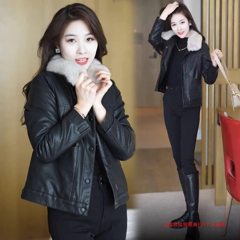 Women’s leather jacket fleece-lined thickened 2023 Winter new warm cold-proof detachable large fur collar leather jacket
