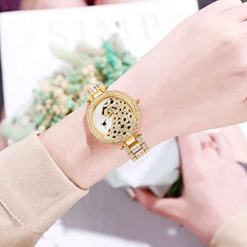 Women’s Leopard Diamond Watch with Stainless Steel Strap and Bling.