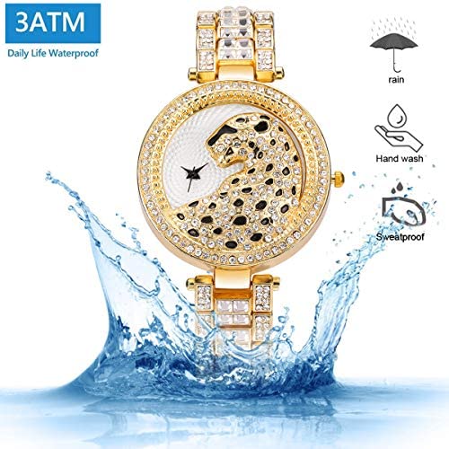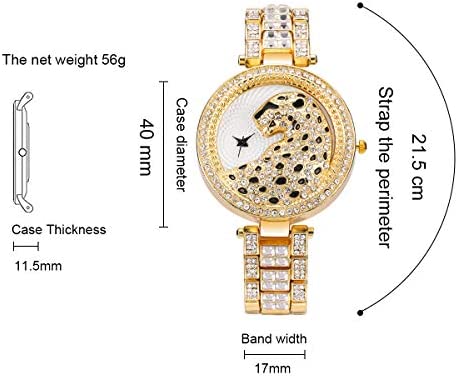 ManChDa Iced Out Watch Women's Luxury Leopard Diamond Round Wrist Watch Stainless Steel Blinged Out Watch for Women Ladies
