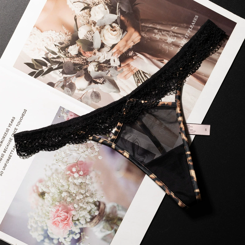 Women’s Leopard Print Transparent Seamless Lace European and American Thong
