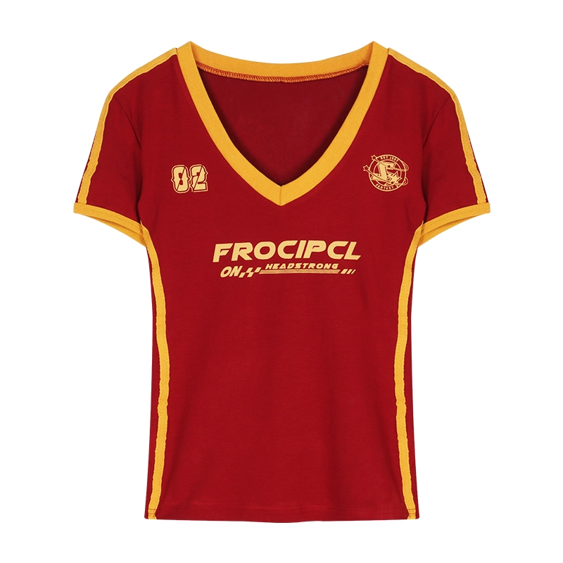 Women’s Letter Printed V-Neck Right Shoulder Summer Slim T-Shirt
