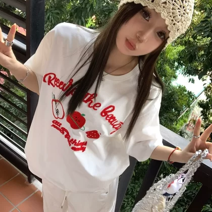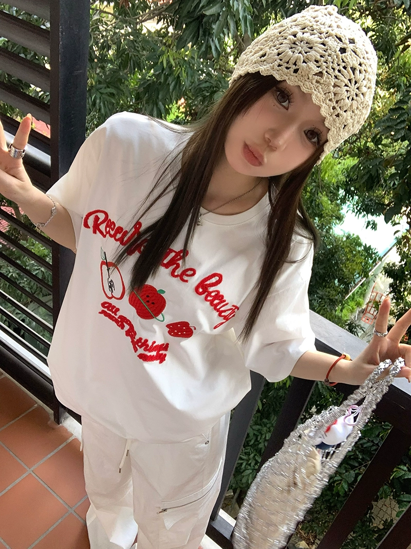 | nameOriginal | Women's letter short sleeve summer loose casual embroidery |