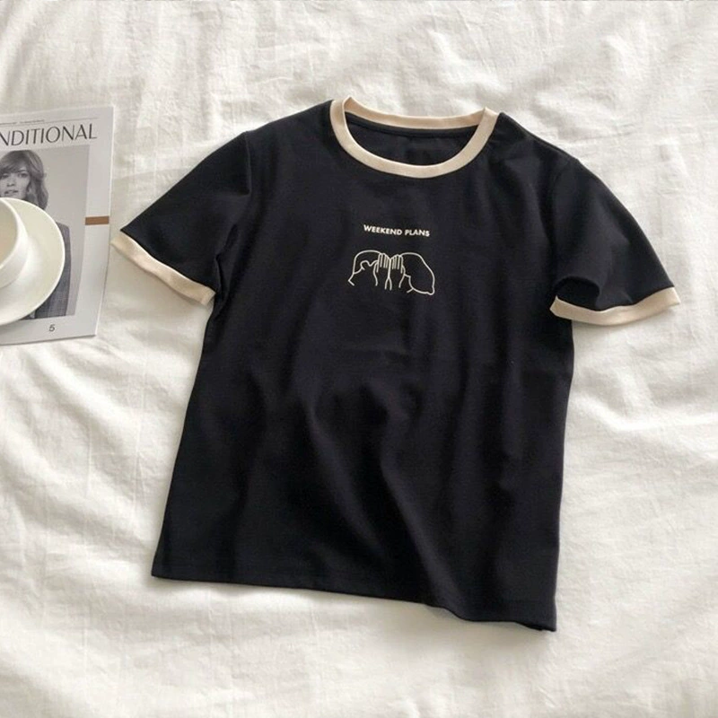 | nameOriginal | Women's lettered short-sleeved student casual bottoming shirt |