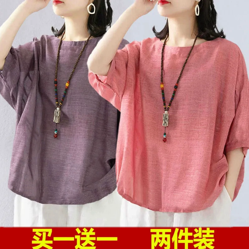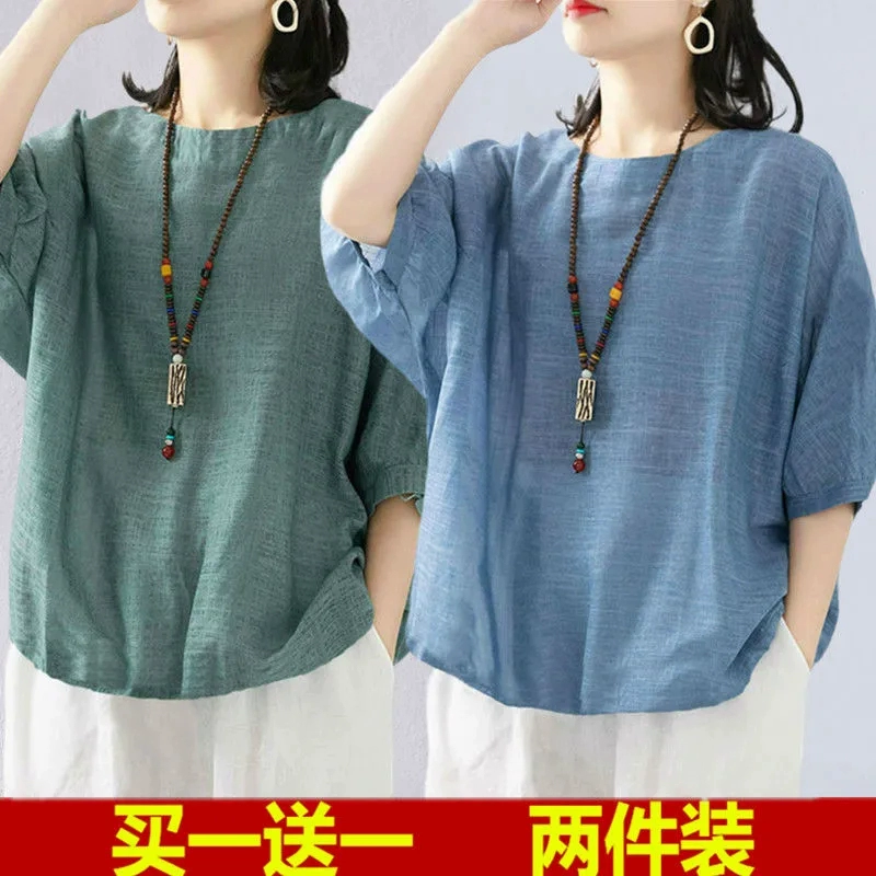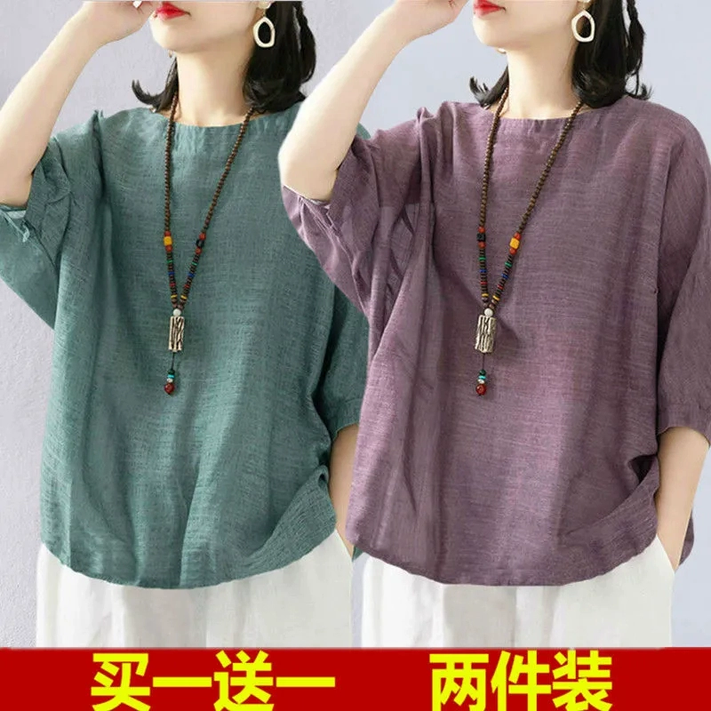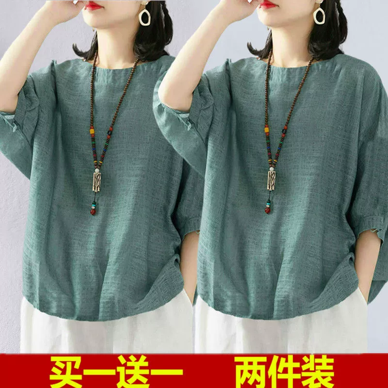 | nameOriginal | Women's linen clothes shirts middle-aged mothers short sleeves |