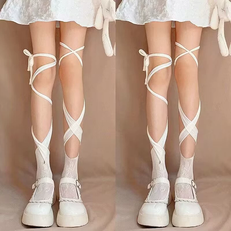 | nameOriginal | Women's lolita spring and summer over-the-knee cross strap socks |