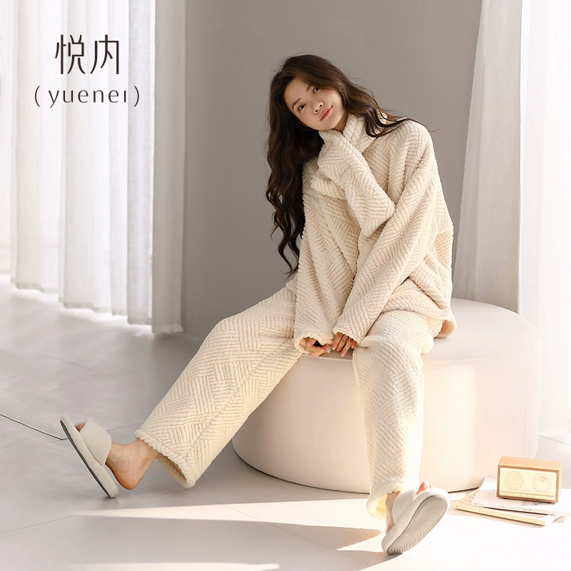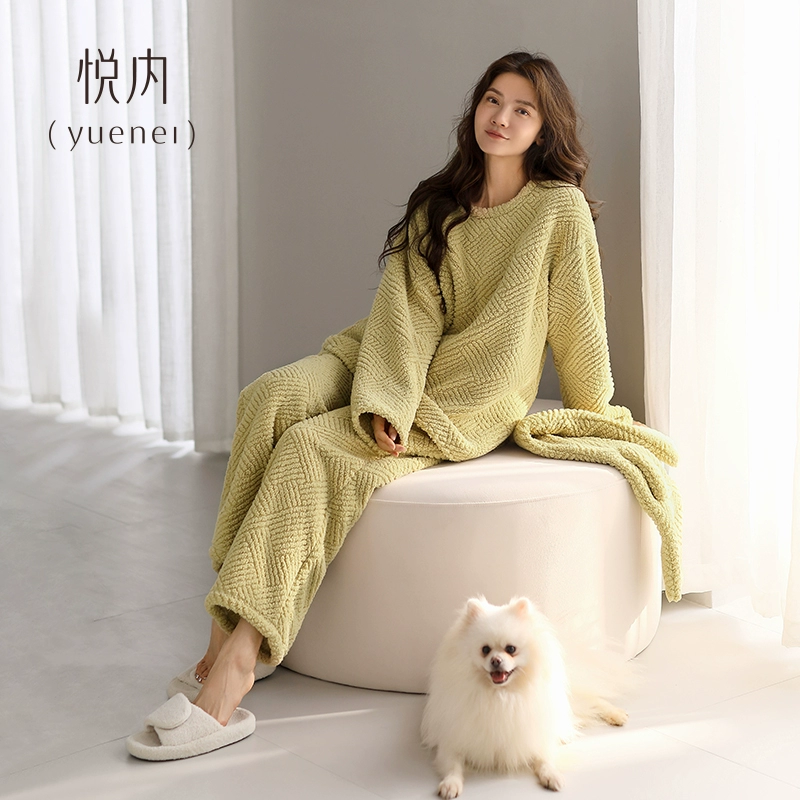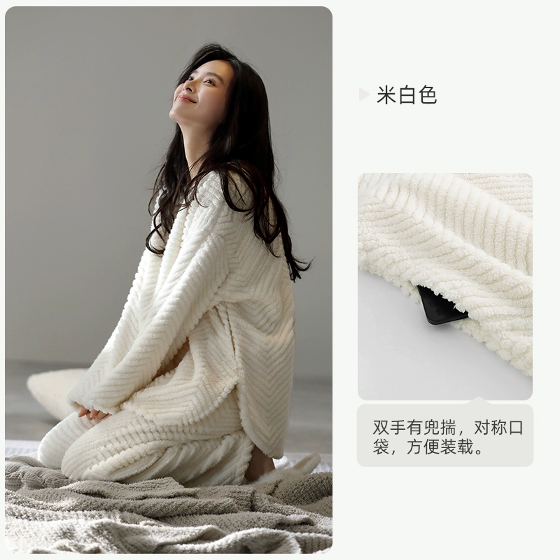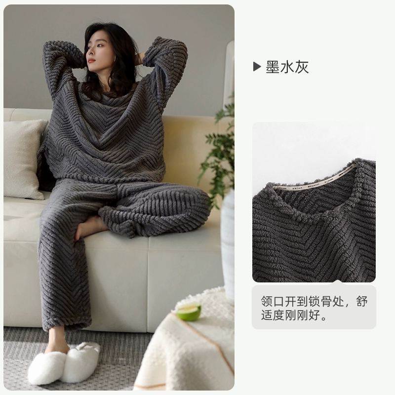 | nameOriginal | Women's long flannel warm round neck pullover pajamas |