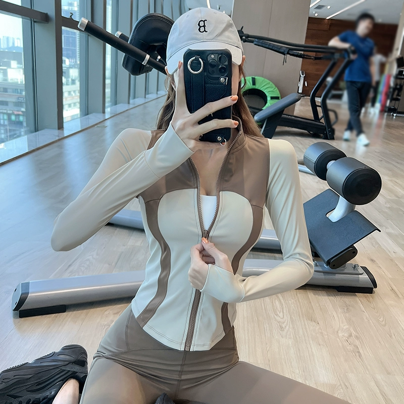 | nameOriginal | Women's long-sleeved fitness training yoga clothes with blue pattern and color matching |