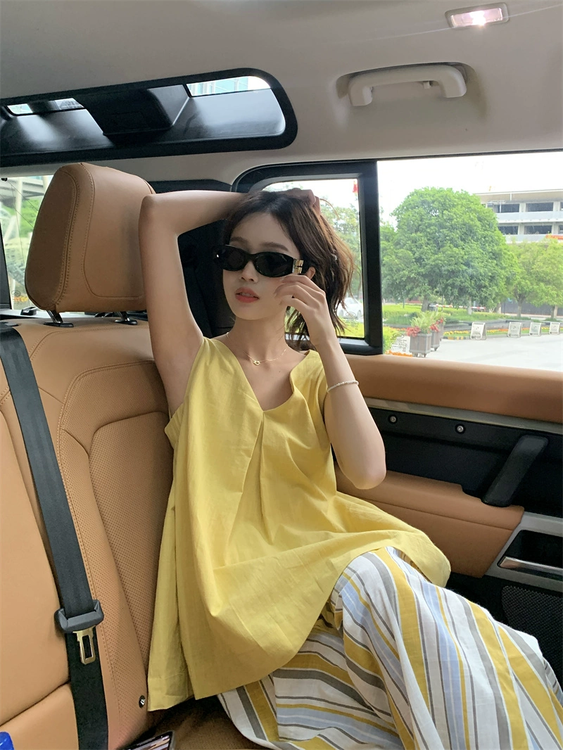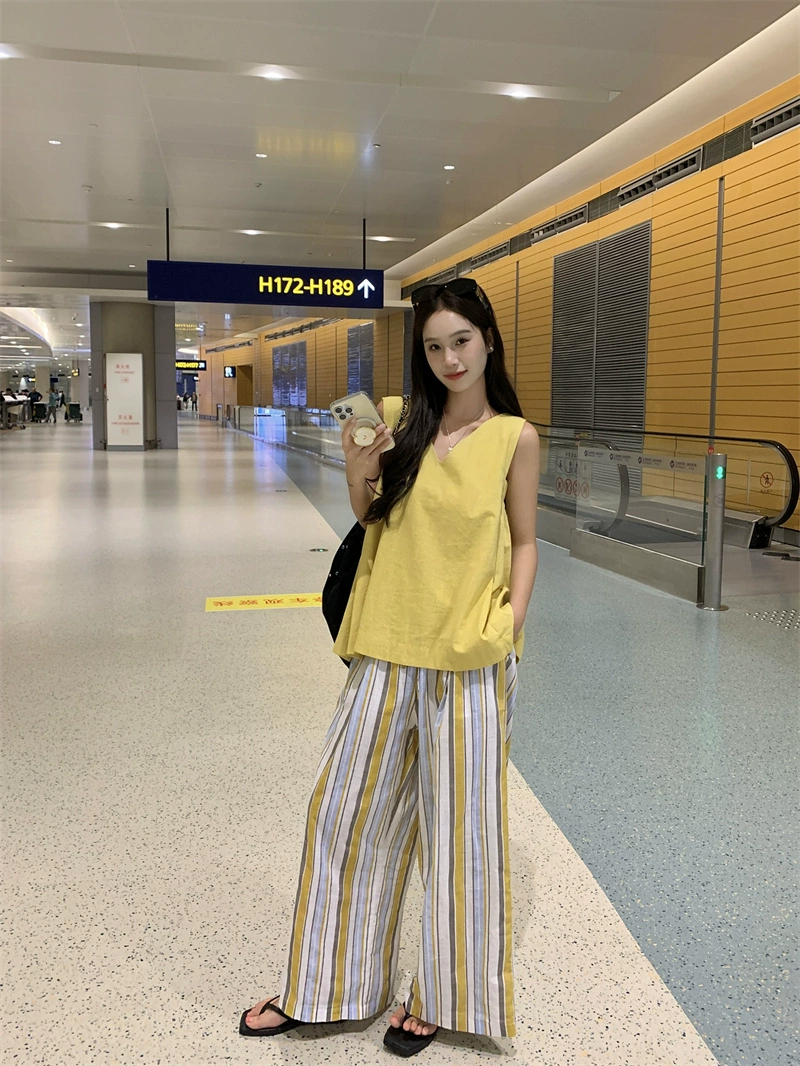| nameOriginal | Women's loose sleeveless shirt striped casual two-piece set |