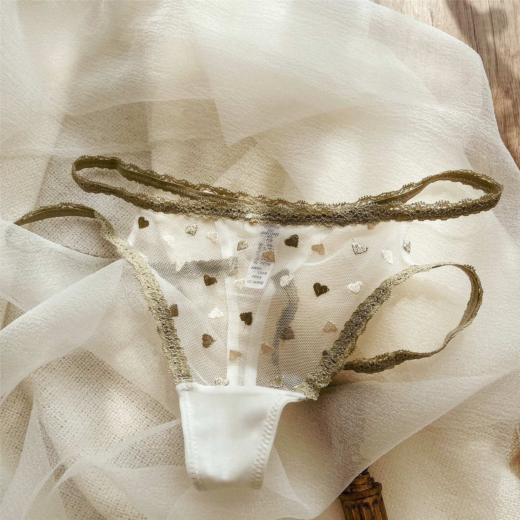 Female low -waist underwear sexy lace cutout thong cute love embroidery T pants hidden no trace pure band